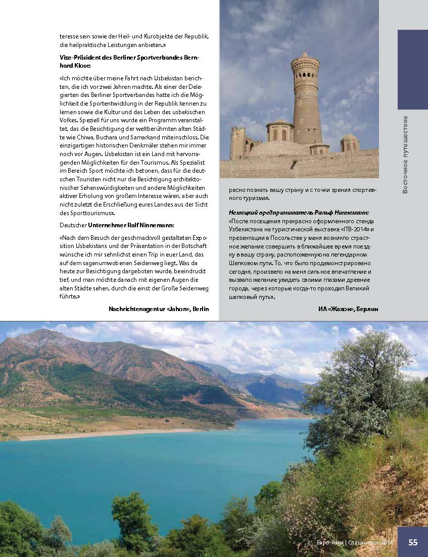 Vom 6. bis 10. März 2024 präsentierten sich auf der ITB in Berlin 10.086 Aussteller aus 188 Ländern. Es kamen über 110.000 Fachbesucher nach Berlin, davon mehr als 43 Prozent aus dem Ausland. Das Interesse an Reisen nach Zentralasien wächst beständig. Historische Städte entlang der Alten Seidenstraße, imposante Berglandschaften und Natur pur, dazu beträchtliche Investitionen in die touristische Infrastruktur, neue Fluglinien und Visafreiheit machen einen Aufenthalt in Zentralasien lukrativ und unvergesslich.